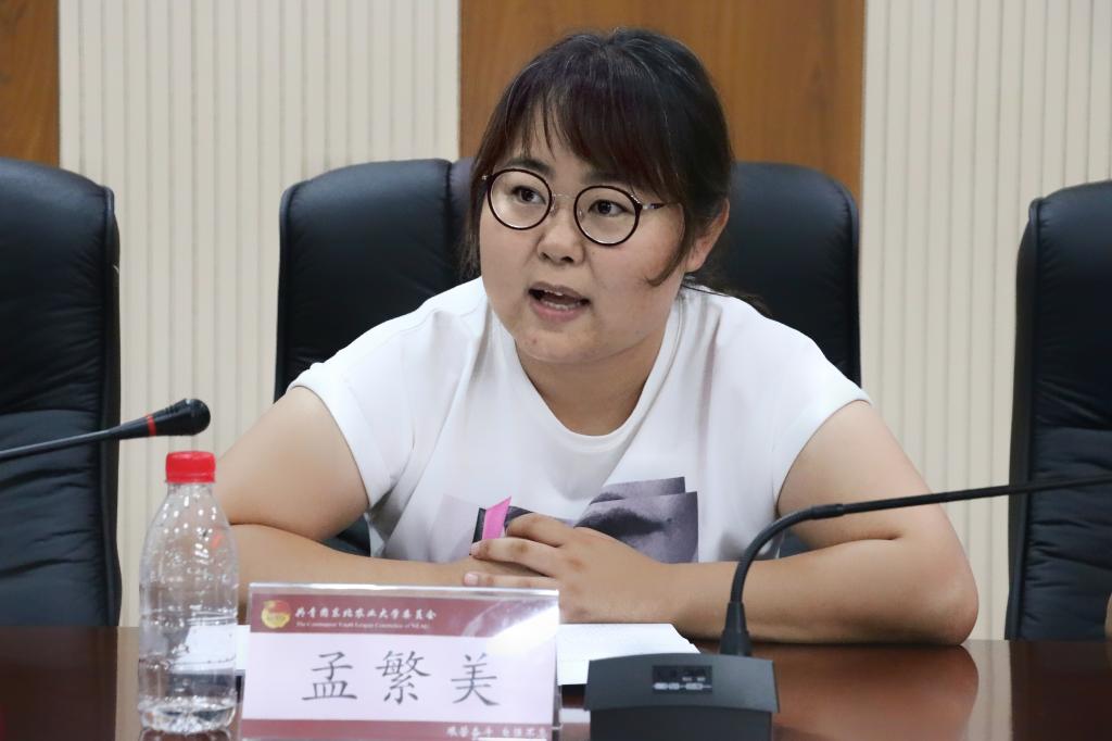 资源与环境学院团委书记孟繁美说,作为基层的一名团干部,我深感岗位光荣,责任重大,共青团改革向纵深发展,在基层落地,我们有责任通过自身努力让共青团同青年的联系更加紧密。 "青春逢盛世,奋斗正当时",我想我们要撸起袖子加油干,迈开步子再出发,把习近平总书记和党中央对青年的关怀和期待传递到广大青年当中,把对共青团和青年工作的要求落实到具体工作中,把对团干部的要求作为自己不懈努力的标准,切实担当起这份光荣的使命和责任!结合我省作风整顿优化育人环境和我校治校新理念,作为一名团委书记我更应该积极学理论、强信念,讲政治、严自律,促改革、抓落实,改作风、守规矩,从自身把新时代共青团的好形象树起来,团结青年为实现党的十九大提出的目标任务而奋斗的责任。