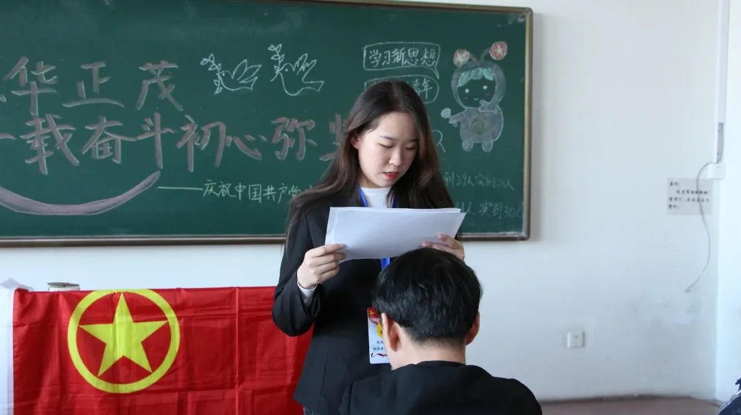 同学们在团支书的带领下开展了话题讨论,制作团课主题海报、畅谈团课心得体会,手写团课观后感,录制积极向上的音视频,进行现场知识竞答等丰富多彩的活动,在各班级文艺委员的组织下唱团歌,并在团活尾声之际以板报为背景合影留念。