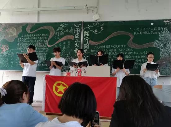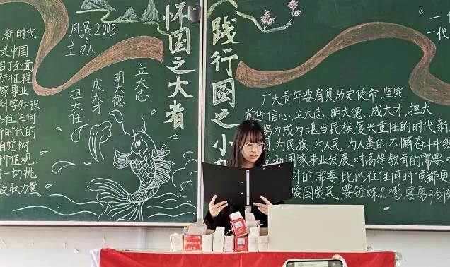 各班团支部提前通知班级同学了解并学习相关材料,并准备切合主题的节目,进行彩排,团活当天再由各班团支部负责人进行此次活动的开场环节,引出本次活动主题后组织带领同学们开展主题班会,欣赏相关视频及特色节目的表演。通过本次团日活动,引导同学们要时刻紧跟时代潮流,牢牢把握国家需要,敢为人先、敢于突破,敢于创新,敢于施展才能,以聪明才智贡献国家,以开拓进取服务社会。要实学实干,脚踏实地、埋头苦干,孜孜不倦、如饥似渴,在攀登知识高峰中追求卓越,在肩负时代重任时行胜于言,在真刀真枪的实干中成就一番事业。