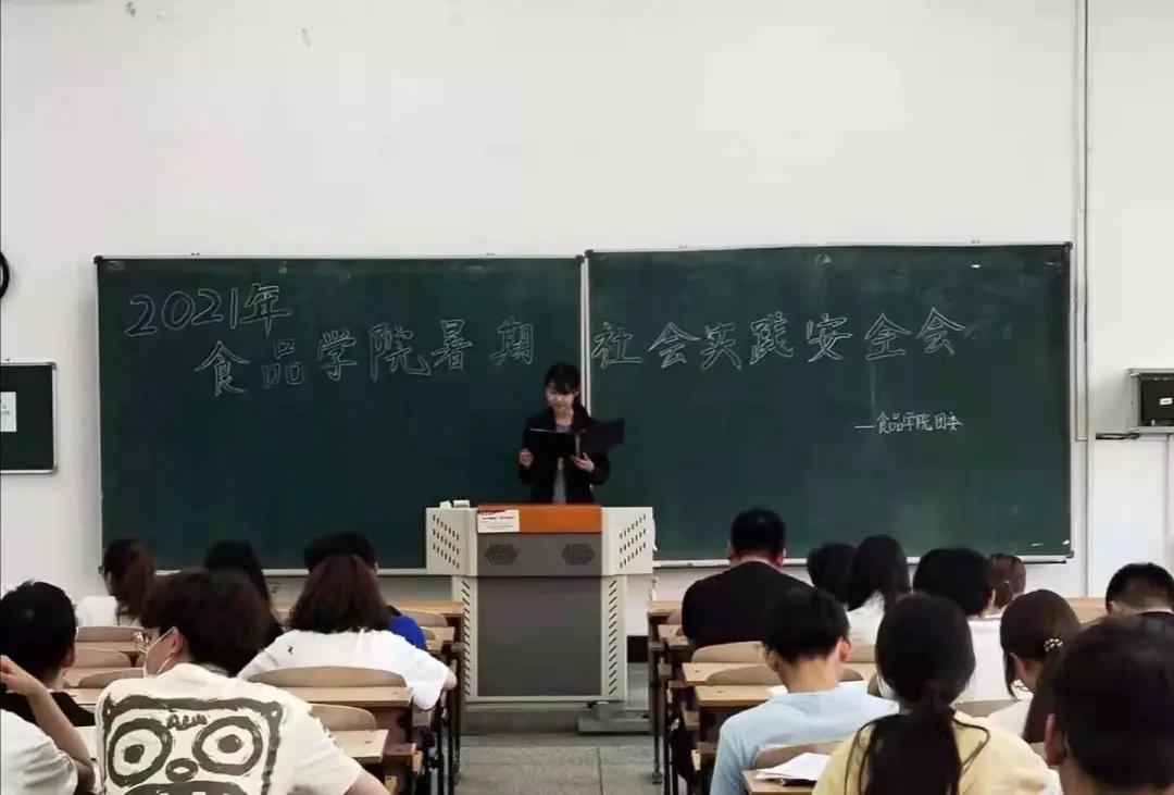 盛夏热情似火,社会实践乘风而来,为了加强各队伍的安全意识,保证社会实践工作的顺利进行。食品学院学生团委于2021年6月23日傍晚6点整在教学楼教阶二举办了2021年食品学院暑期社会实践安全会。