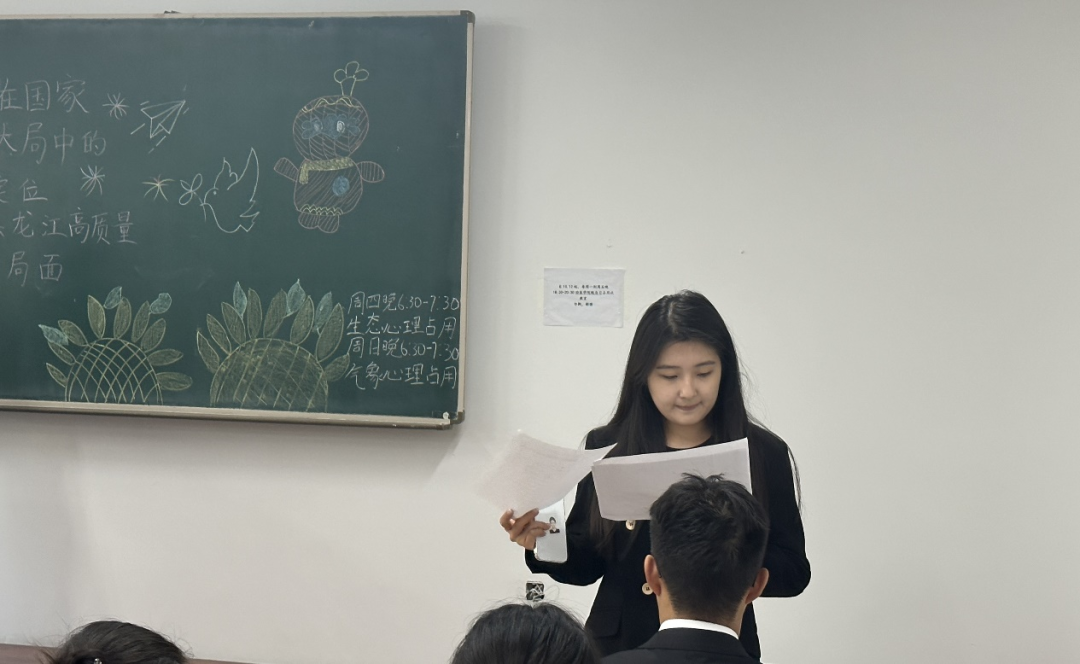 鉴于此,经济管理学院团委开展“牢牢把握在国家发展大局中的战略定位奋力开创黑龙江高质量发展新局面 ”主题团日活动,带领同学们深刻理解总书记对东北地区和黑龙江发展一系列重大理论和实践问题的深远战略考量,切实把总书记的亲切关怀转化为坚定拥护“两个确立”、坚决做到“两个维护”的实际行动,从短板中看潜力,在优势中强信心,扬长补短,努力把资源、生态、科研、产业、区位优势转化为发展新动能新优势,在新征程上展现新作为、创造新业绩,坚决扛起职责使命,奋力谱写龙江全面振兴新篇章。