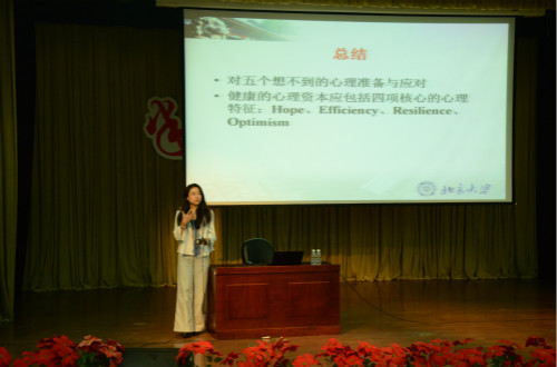 在讲座最后的互动环节中,由专业老师为大家带来了神奇的心理体验,通过指导语和轻柔音乐的辅助,帮助大家感受自己的情绪变化,发现内心深处的自己,聆听自己最智慧的部分。