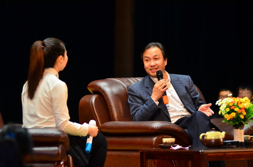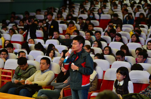 在与同学们的问答互动中,包军校长耐心认真的倾听了同学们提出的问题,以幽默风趣的语言和深刻的思想认识对同学们关心的求职、学科建设、学校资源利用、食品安全等问题做出了详细的解答。互动结束后,包军现场抽取了幸运观众并颁发了100期校园文化快车纪念品。近两个小时的活动在同学们热烈的掌声中落下帷幕。