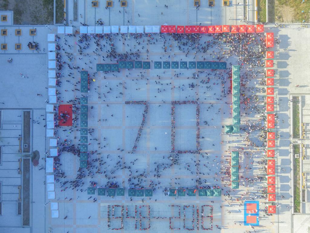 学生社团成员向校庆70周献祝福 展演现场同学们向校庆献礼