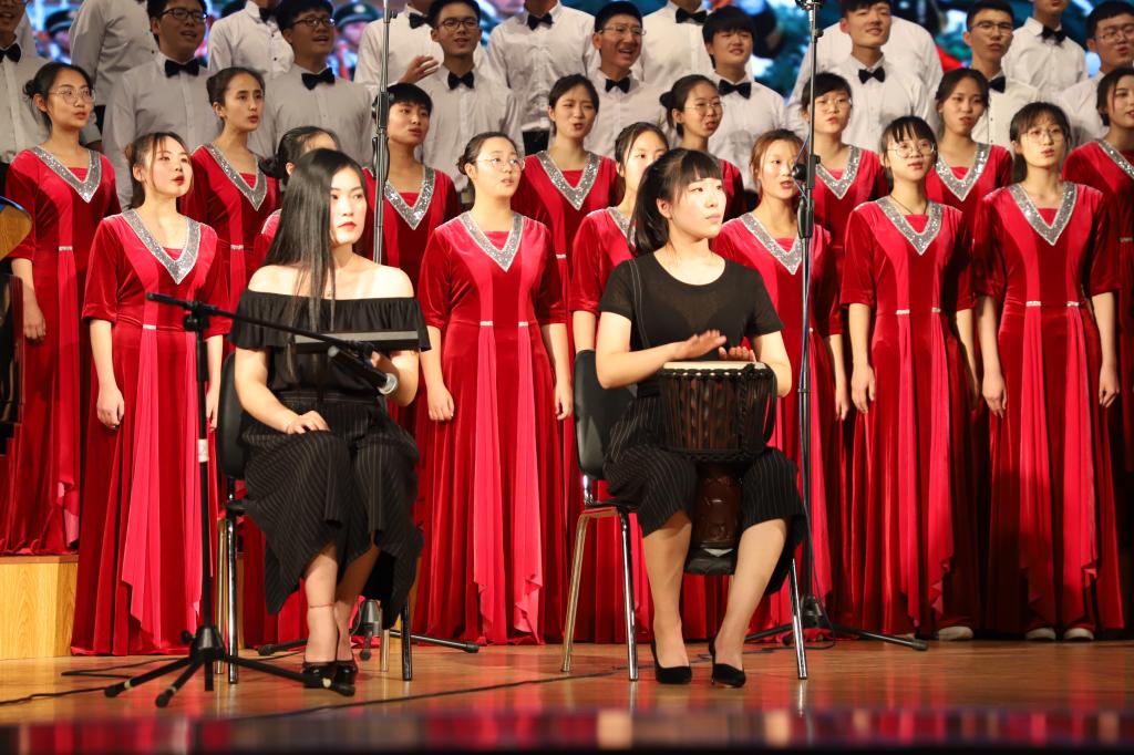 一首承载着故事的《思念》极富年代感,把思念之情传递给在场的每一个人。《天晴了的时候》领我们步入雨后放晴的村庄,感受扑面而来的乡土气息。一曲敬献老师的《飞来的花瓣》,在校庆70周年之际,用真挚的感情与歌声回报老师的谆谆教诲,向现场老师们深情的道上一句“老师,您辛苦了!”最后,一曲祖国儿女的歌颂《我爱你中国》,在我们耳边久久回荡,感动与震撼一如初闻,爱国爱校的情怀更是牢牢铭记心中。非洲鼓和沙锤的完美配合把整个音乐会推到了高潮,指挥曹俊峰老师与台下观众热情互动,至此,“青春咏叹,献礼东农”专场音乐会落下帷幕。