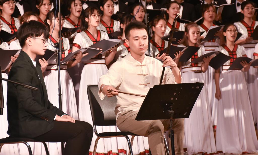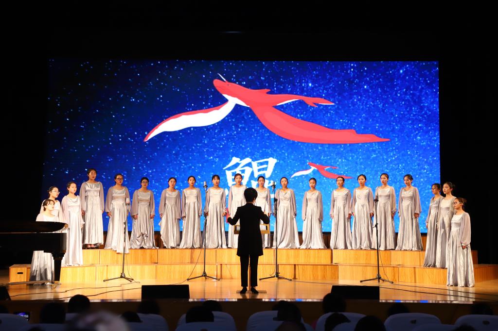 深情款款的《大鱼》以其悠远的音律将观众引入偌大的宇宙,纵观阴阳转换,生生不息。一曲《葬花吟》,娓娓道来,深情演绎出如花美眷的痴痴情义,加之王守宽老师精湛的二胡演奏和独特的艺术处理手法,使整首曲子宛如天籁。多声部合唱的《夜来香》带我们走入柔和的夜色。这幽幽的夜来香将暮色点亮,这美妙的歌声将情丝传唱。