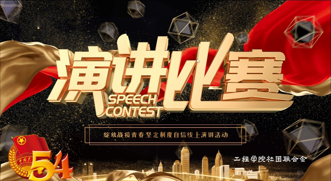 为深入开展爱国主义教育,传承和弘扬五四精神,坚定制度自信,鼓舞抗疫斗志,工程学院社团联合会举办“绽放战疫青春·坚定制度自信”线上主题演讲比赛,参赛学生紧扣时代主题,讲述疫情防控过程中自己的所做所思,表达了新时代青年的青春感悟。
