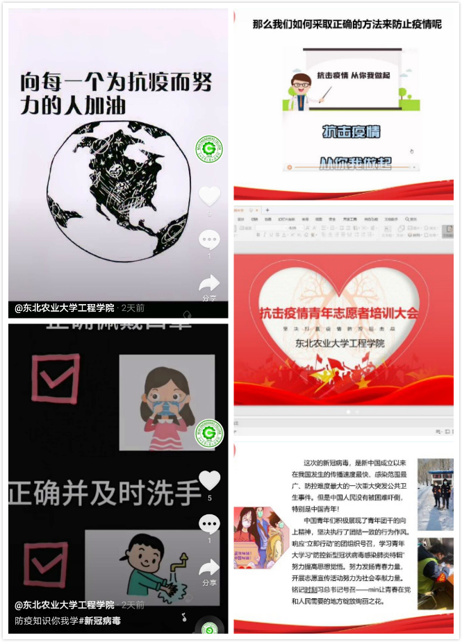为响应并落实学校党委、学校疫情防控工作领导小组对疫情防控工作的有关要求,工程学院青年志愿者站依托线上会议、学院抖音平台积极开展广大团员的疫情防控知识线上培训,从防控基础知识、应急管理、控制措施、消毒措施、个人防护技能等方面进行重点培训,杜绝大意思想和侥幸心理,进一步强化紧迫感、责任感。