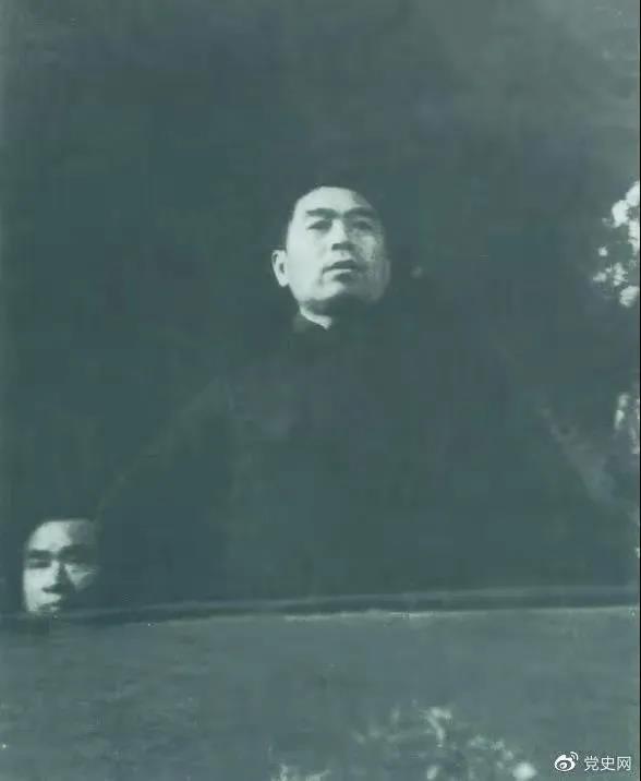 图为周恩来在中国共产党第七次全国代表大会上发言。