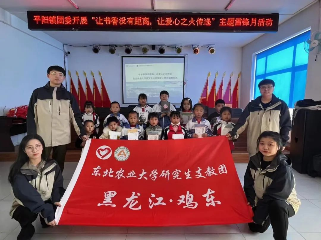 3月20日,在平阳镇团委书记王玥同志的主持下,一场小小的捐赠仪式在镇政府文化馆召开,十几位学龄儿童和他们的家长参加了本次捐赠仪式。在会上,东农研支团鸡东服务队的成员们为他们介绍了本次活动的情况,并对孩子们进行了鼓励与支持,亲手将爱心物资交到了他们手中。