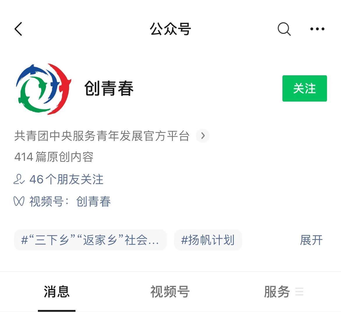 通过“创青春”公众号——返家乡服务平台开展报名工作。