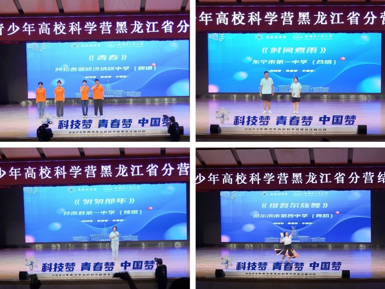 7月28日晚,2023年全国青少年高校科学营黑龙江省分营结营晚会在哈尔滨工业大学举行,我校分营营员在结营晚会上做汇报演出。