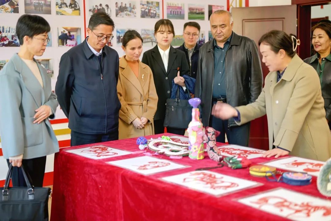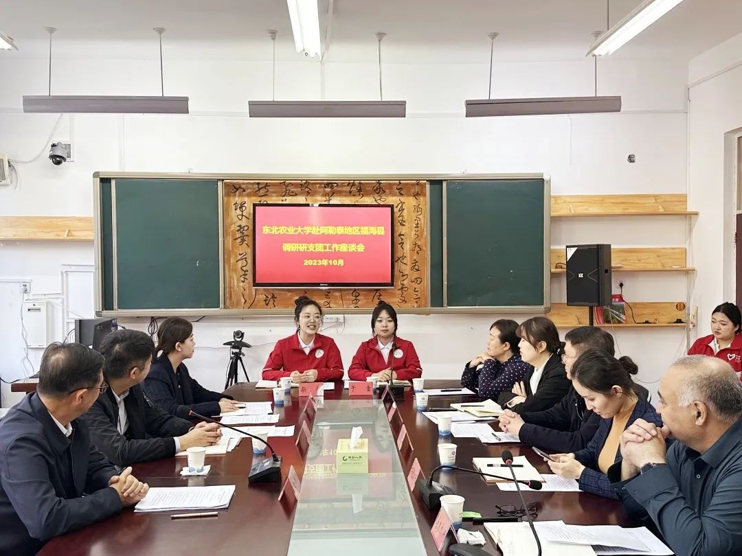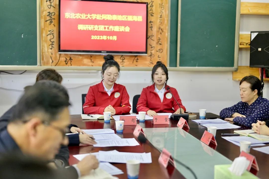 马木尔汗·库尔马汗代表福海县对东北农业大学一行表示热烈欢迎,向学校长期以来对阿勒泰地区教育事业和志愿服务发展的支持表示诚挚感谢。研究生支教团新疆福海服务队党小组组长于童做工作汇报,柴彤、张嘉俊、韩祎凡三名志愿者分别发言,分享了支教三个月以来的心得感悟;古丽巴尔汗·苏马胡力与玛依娜·塔勒甫分别进行了交流发言。