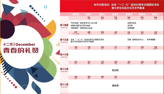 根据9—12月校园学习生活实际,本届艺术节设置了月度主题: