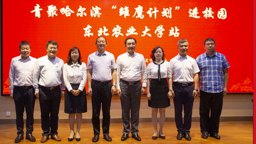 为全面贯彻落实市委、市政府关于加强青年人才工作有关要求,为我市更好地吸引人才、留住人才、用好人才,哈尔滨市科技局和哈尔滨团市委共同举办了青聚哈尔滨“雏鹰计划”进校园系列宣讲活动。6月19日下午,主题活动在科学文化中心109会议室举行。我校副校长李伟凯、哈尔滨市科技局局长李志杰、哈尔滨团市委副书记陆一平、哈尔滨市科技局法规处处长李明、我校国家大学科技园与产业管理办公室主任李海成、国家大学科技园与产业管理办公室副主任王磊以及有留哈意愿或创业意向的200余名学生参加了本次活动,活动由校团委书记于兴业主持。