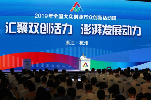 “双创周”启动仪式由中国科协主席万钢主持,浙江省主要负责人在启动仪式上发言,老中青三代创新创业者代表共同书写大众创业万众创新的“众”字,正式启动“双创周”。李克强在会上指出,要坚持以习近平新时代中国特色社会主义思想为指导,深入实施创新驱动发展战略,汇聚起全社会创业创新的滚滚洪流,奋力推动国家发展,实现人民对美好生活的向往。