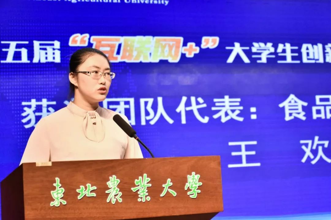 最后,第四届中国“互联网+”大学生创新创业大赛银奖项目《‘酶’那么重要的‘江大豆’——新一代植物油产业领导者》团队成员、食品学院博士生王欢代表参赛学生进行了发言。王欢分享了团队在校赛、省赛还有国赛的比赛经历,她表示学校教育、服务、实训三位一体的创新创业体系还有全方位全过程的专业化、社会化的孵化服务为团队参加比赛提供了有力的保障,并且鼓励同学们应积极发挥专业优势,实现自身价值,充分利用学校的创新创业平台,为自己的创业创新梦插上翅膀。