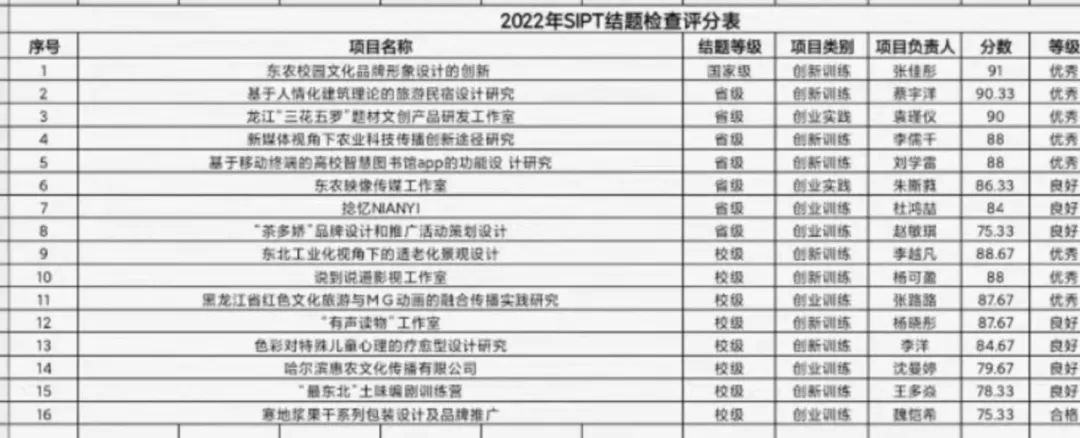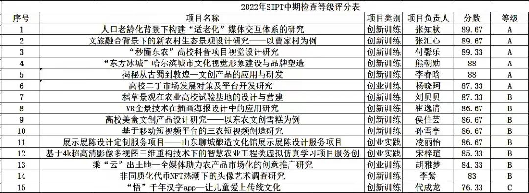 艺术学院2022年SIPT中期暨2021年SIPT结题答辩结果通知