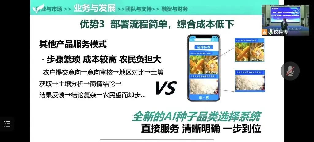 终审路演分为PPT展示和评委问辩两个环节。各参赛团队通过直播路演对参赛项目的创新意义、实践过程、社会价值、发展前景、团队协作等方面进行了汇报展示,参赛项目涵盖了农林、畜牧、食品、生物医药、信息技术和电子商务、机械能源、文化创意和服务等多个领域。评委进行了问辩,并对项目可行性、价值塑造、营销模式、技术创新点等方面提出了建议,帮助团队进一步完善和优化参赛项目,并评选出本届大赛的一、二等奖。