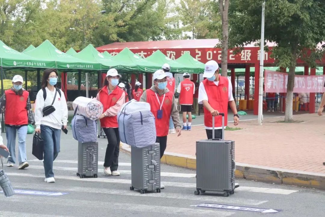 转运大巴车将新生送至南北区各迎新站点,随车志愿者随即负责搬卸行李,并引领新生至各学院所设签到地点。近两日,气温较低,但志愿者们却始终用饱满的热情迎接新同学的到来,他们真诚奉献,主动担当,为新生提供了高效、热情的服务,让学生暖心、家长放心。