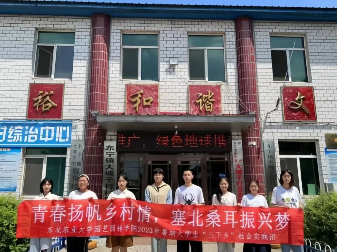 党的二十大报告指出,加快建设农业强国,扎实推动乡村产业、人才、文化、生态、组织振兴。自党的二十大颁布实施以来,乡村振兴取得了显著成果,促进了农业全面升级、农村全面进步、农民全面发展。为响应乡村振兴战略,更加深入了解乡村振兴政策在基层落实现状,增强大学生社会责任感和使命感,2023年7月10日,园艺园林学院“青春扬帆乡村情,塞北桑耳振兴梦”社会实践团来到黑龙江省牡丹江市东宁市大城子村进行了暑期大学生“三下乡”社会实践活动。“青春扬帆乡村情,塞北桑耳振兴梦”社会实践团积极联系村支部,参观渤海博物馆了解大城子村历史文化背景,实地考察木耳养殖基地,深入学习了解木耳养殖技术,对木耳与新技术的结合进行了线下宣讲与线上宣传,进一步推动贯彻科技兴农,拓展农业多重功能,挖掘乡村多元价值。