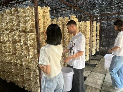 实践团成员观察白木耳