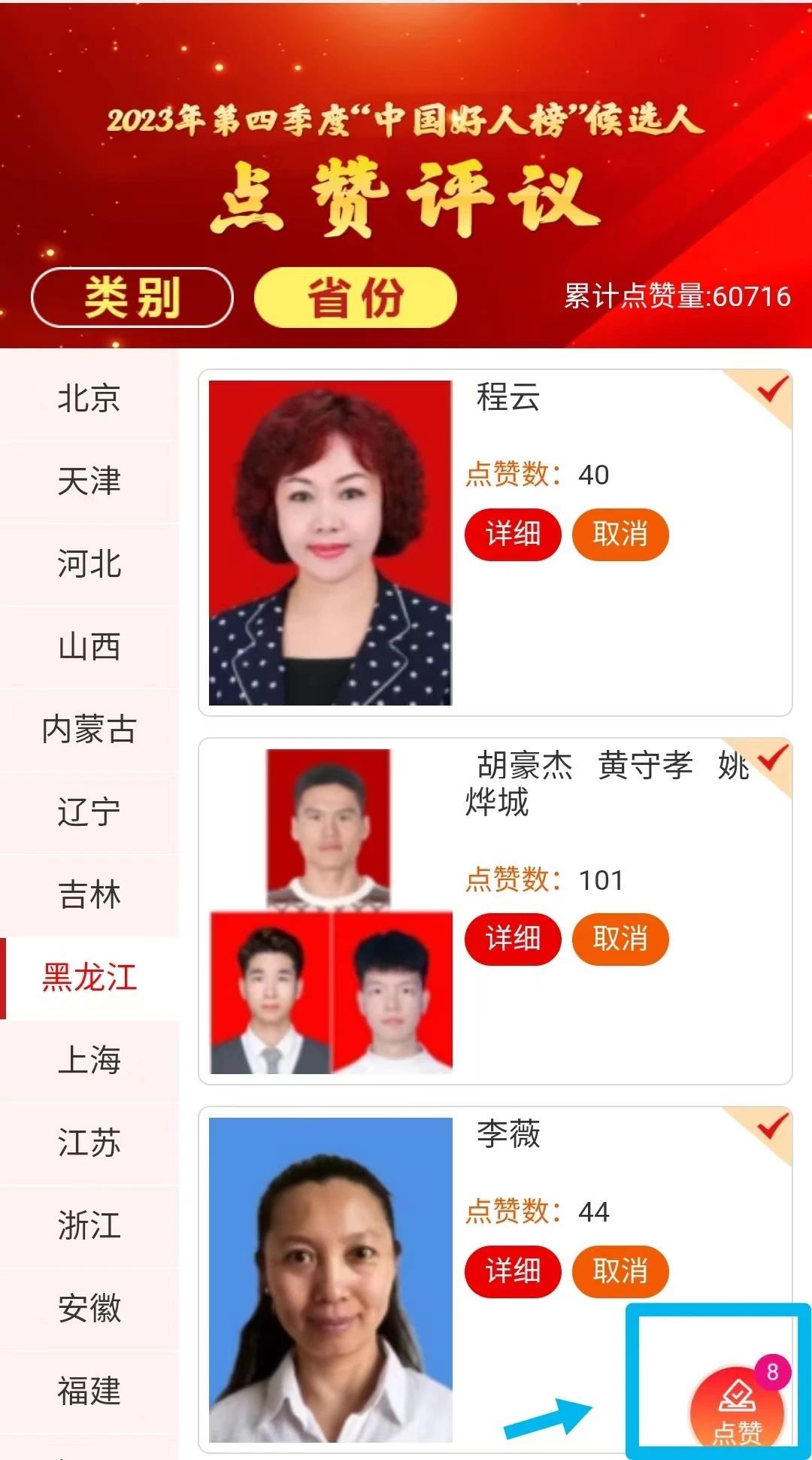 黑龙江省推荐报送的10名候选人成功入围,欢迎大家点赞关注,为龙江好人助力。点赞活动日期将持续到2024年1月14日。