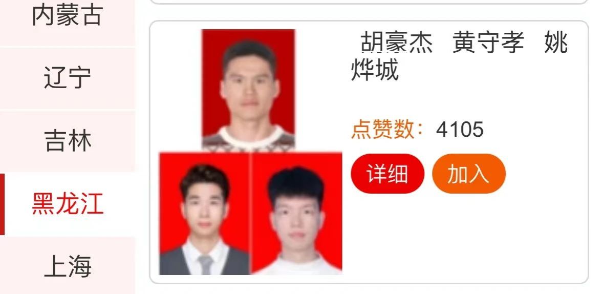 哈尔滨市:胡豪杰 黄守孝 姚烨城