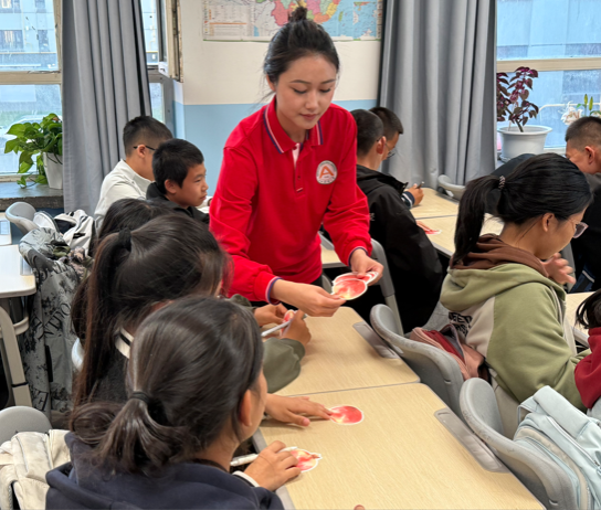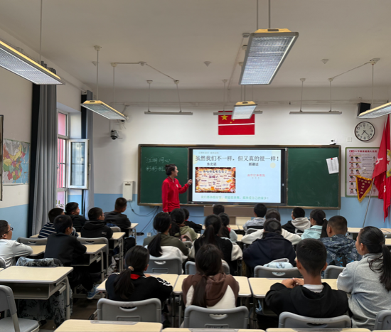 互动环节中,支教团成员以民俗文化为切入点,为同学们介绍东北二人转、新疆麦西来甫的歌舞特色以及东北铁锅炖、新疆手抓肉的饮食风味,引导学生从文化差异中看见更深层的联系。在对不同地域文化的探讨中,让学生感受多元文化魅力,将“尊重差异、包容互鉴”的理念于互动中自然传递。
