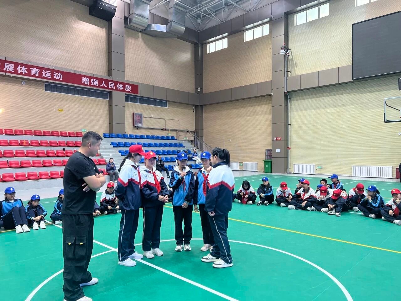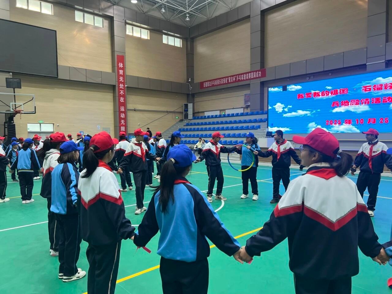 开营破冰环节,成员们统筹协调,为初级中学学子与182兵团学生搭建沟通桥梁,通过互动协作打破地域隔阂,助力学生进行团队建设。