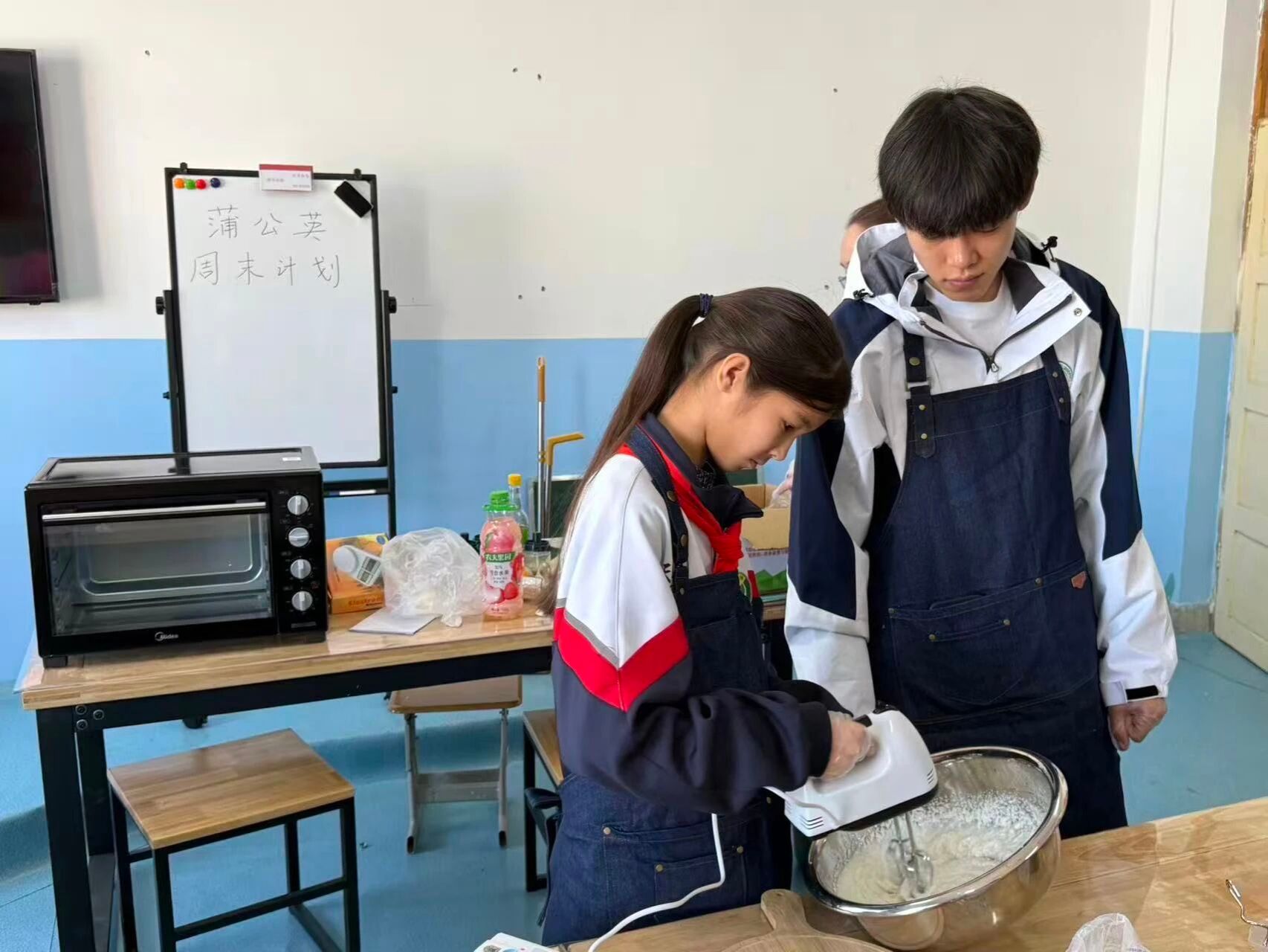 为丰富青少年假期生活,助力青少年德智体美劳全面发展,1月11日,东北农业大学研究生支教团在福海县开展“蒲公英”周末计划第二期活动,特邀初级中学劳动教师帕丽古丽为学生带来趣味烘焙体验。