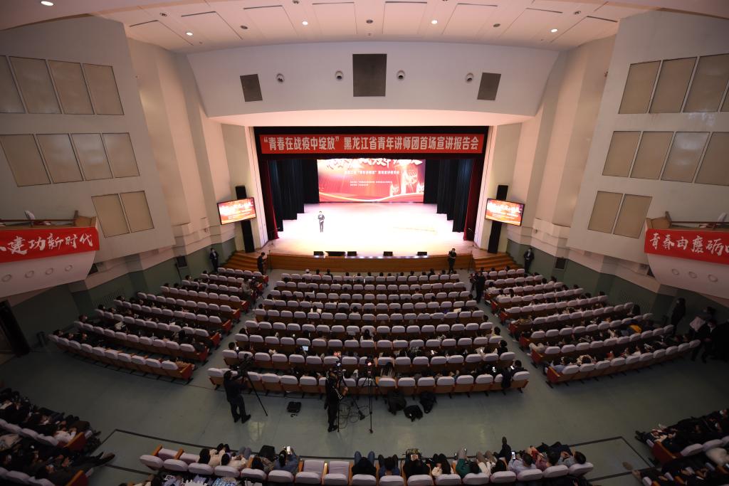 哈医大一院重症医学科主任、省青年讲师团特聘导师赵鸣雁开场以《真情洒热土执甲卫人民》,讲述了她79天坚守一线,2次开启重症救治中心,携同事挽救133名新冠患者生命,及数次奔赴俄、意多国提供防控诊疗指导的抗疫故事,为全省青年上了一场特别的抗疫思政课。疫情期间,坚持志愿服务与时间赛跑接续爱心的正能量网红车队省“抗疫英雄—抗疫雷锋在身边”抗疫战队北安市雷锋车队,奔赴湖北孝感安陆医院和安陆“小汤山”的双鸭山市援鄂医疗队总护士长韩雪,第一位报名市志愿者在零下40度不懈坚守1872小时的漠河市青年抗疫志愿者服务队副队长、黑龙江大学兴边富民计划研支团成员赵梓旭,昼夜奋战严防死守社区“第一道防线”的香坊区建筑街道绿海社区党委书记、居委会主任刘颖,奔赴湖北疫情防控一线捕捉千里支援瞬间的黑龙江广播电视台援鄂医疗队随队记者王东旭等5位宣讲团成员,讲述了各自在战疫一线的青春奋斗故事,反映我省广大团员青年在面对疫情时所展现出的对党忠诚、听党号召、不怕苦、不畏难、不惧牺牲的伟大抗疫精神,引起了全场观众的强烈共鸣和热烈反响。