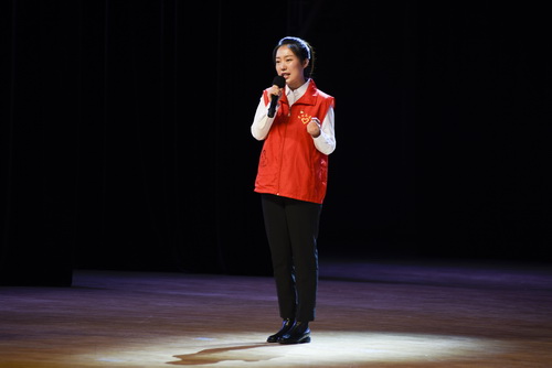 全国抗击新冠肺炎疫情青年志愿服务先进个人、黑龙江省“青年讲师团”讲师、漠河市青年抗疫志愿者服务队副队长赵梓旭进行题为《如果青春有底色 那我定要选择“红”》的宣讲