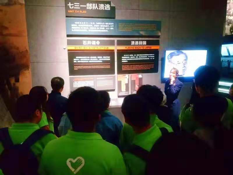 侵华日军第七三一部队罪证陈列馆,告诫人们铭记历史,珍爱和平。生命科学学院青年志愿者服务站与陈列馆建立了合作,组建了志愿者讲解队,由我校的志愿者向各国参观者进行讲解,并开展保护环境,维护场馆秩序,引导参观游客等工作。