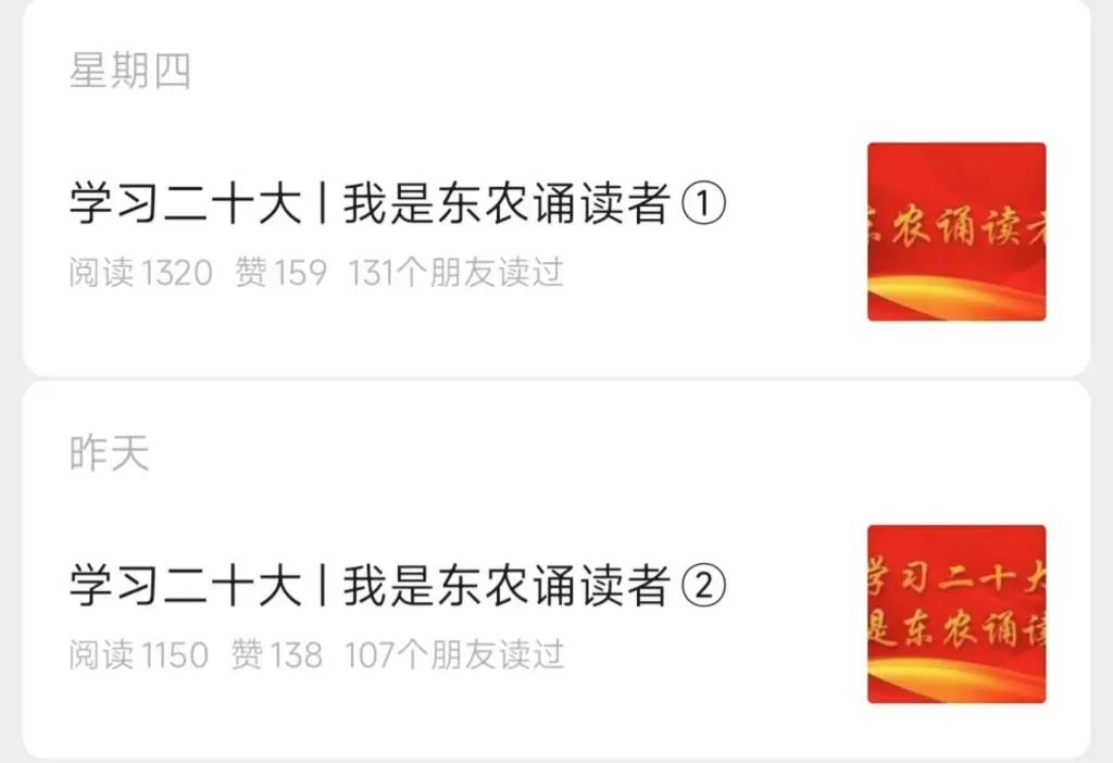 把准青年特点,围绕学习党的二十大精神,深化思政“元宇宙”沉浸式学习行动,打造“我是东农诵读者”“团学骨干说”“青讲”“青年大学习”等短而精、小而优的优质网络课程。同时,借助新媒体传播展示优势,组织开展学习党的二十大网络文化作品展播,收到各学院制作的视频、图片、歌曲、H5、VR等原创优秀作品70余件。开发了“学习党的二十大精神”网络答题软件,答题满分即可获得学习证书, 1.45万名青年学生踊跃参加。通过丰富多彩的直播打卡式的网络活动,带动2.5万人次参与线上学习,不断将思想引领工作引向深入。