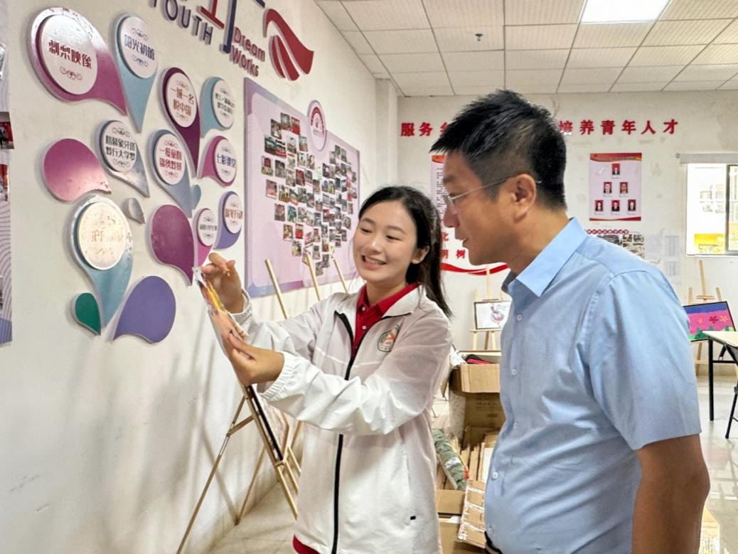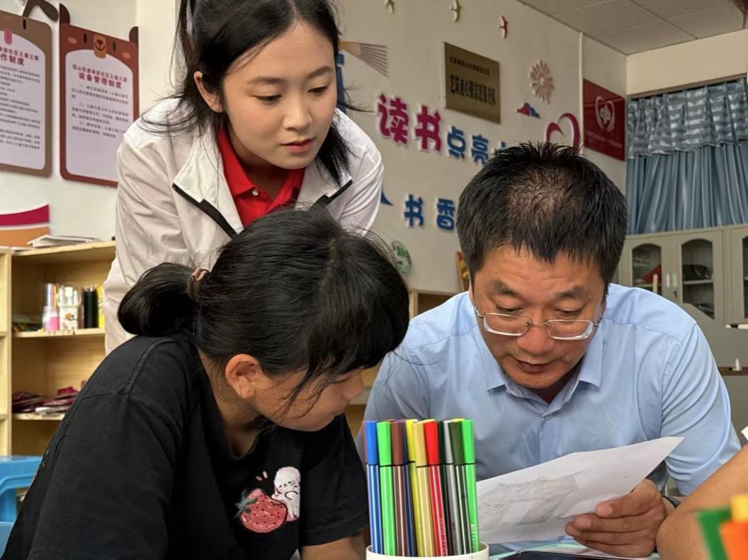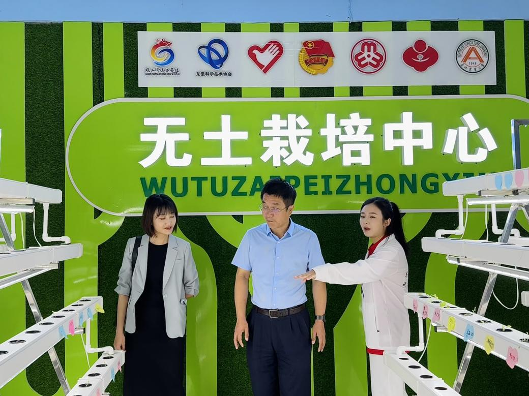 在龙里县奋进社区,贺景平一行听取了冠山街道党工委和奋进社区主要负责同志介绍社区志愿服务工作情况,走进无土栽培实验站、党史馆、圆梦课堂综合活动室等活动场地,观摩志愿者“我是非遗小画家—学习平坡农民画”小课堂,了解了“心幕象牙塔·黔行大学梦”“一纸童心·锦绣黔景”“小小红色讲师团”“农科向黔—智慧农业科普实践”等我校研究生支教团品牌项目的开展情况。随后,前往支教团驻龙里县服务学校龙里县第七小学参观,副校长代鑫、李梦思介绍了学校概况,并对我校研究生支教团的教育教学工作表示高度认可和由衷感谢。